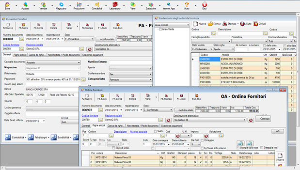 Si avrà la possibilità di interrogare, stampare ed esportare non soltanto gli ordini di acquisto, ma altresì gli ordini di produzione in conto lavoro. È inoltre prevista l'opportunità di analizzare lo stato di qualsiasi riga, sia essa chiusa o aperta, e di gestire direttamente dagli scadenziari gli ordini stessi con un semplice click del mouse.