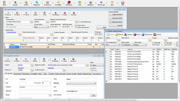 Su ogni articolo è prevista poi la possibilità di distinguere tra fornitori abituali e fornitori alternativi (compresi i relativi listini e codici attribuiti al prodotto). Ogni informazione recepita dal programma verrà in seguito riutilizzata nella pianificazione della produzione.